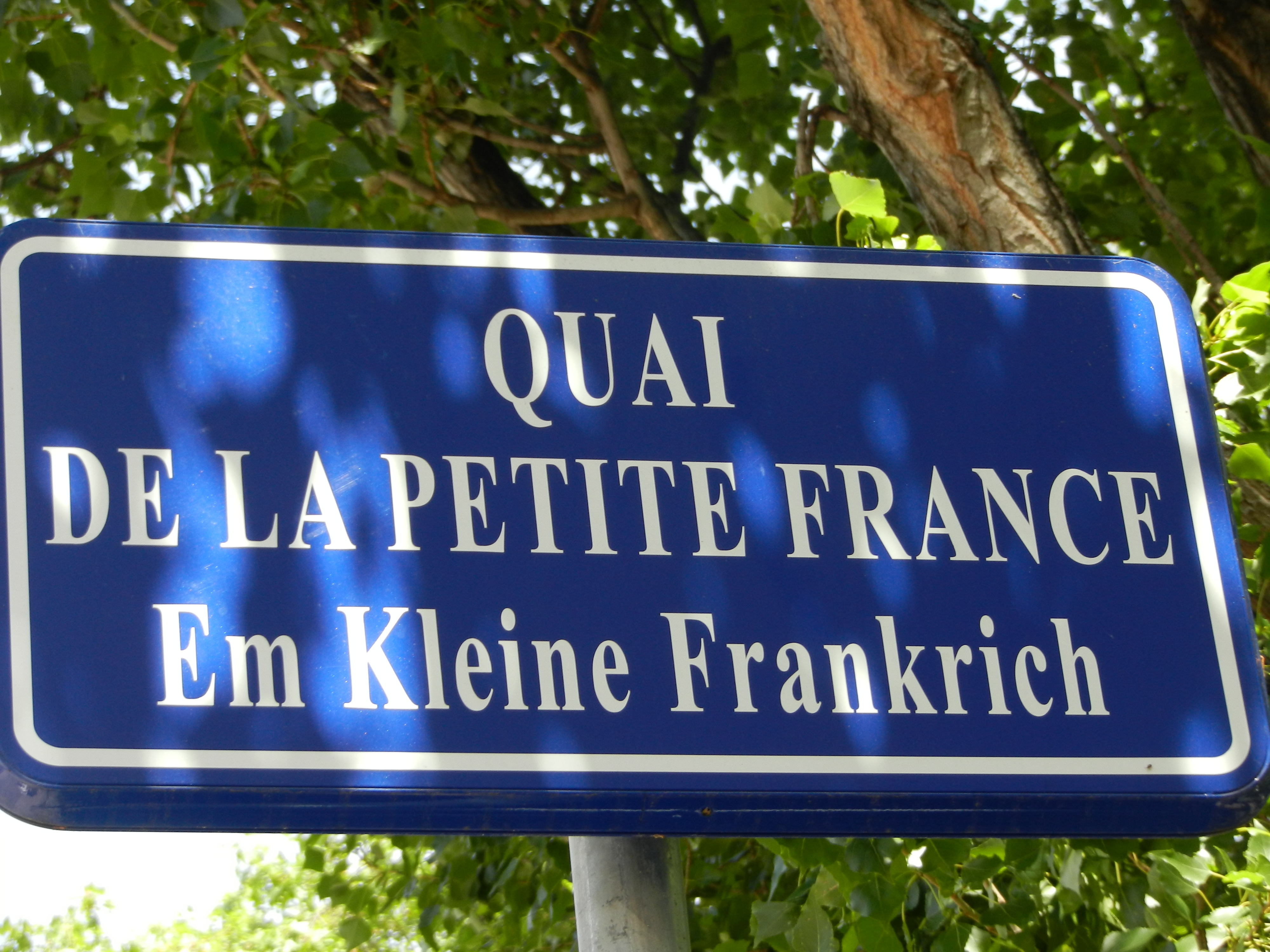 Mit Ungerer unterm Arm gehen wir promenierend ins ehemalige Gauner, Hehler und Rotlichtviertel Straßburgs, das sich mit seinen jahrhundertealten Fachwerkgebäuden zum Touristenviertel gemausert hat. Hier im La Petite France, im ursprünglichen Gerberviertel kämpft Frankreich mit Deutschland um die architektonische Vorherrschaft, und die oberen Etagen berühren sich fast und protzen mit leuchtend roten Geranienblumenkästen. So hätte ich mir das kleine Frankreich überhaupt nicht vorgestellt mit meinen Provence Bildern im Kopf. Zumindest passten dann die Boule spielenden Männer wieder ins Bild. Auf der Suche nach dem passenden Lokal am Wasser unter den Platanen finden wir den perfekten Platz für die Tarte flambée, der Elsässische Flammenkuchen.“Em kleine Frankrich“ wie die Elsässer sagen, kann man genüsslich den Tag ausklingen lassen.